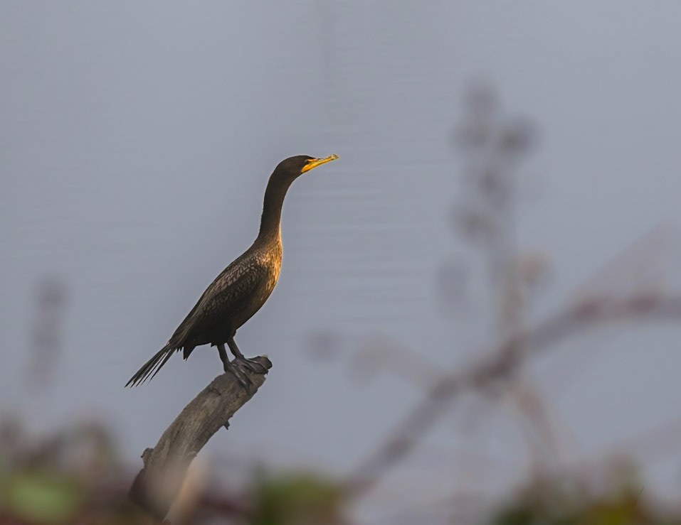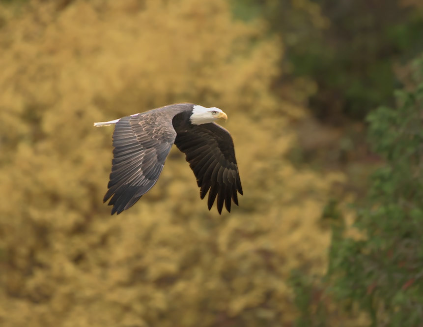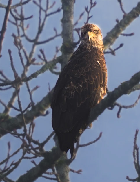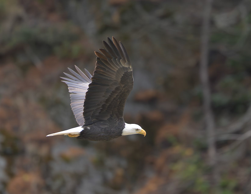 A bald eagle just hanging out at the shoreline, waiting for some fish. Didn't seem to be that concerned with the onlookers just 50 yards away (including me).
